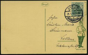 | 10 | 15 € | DEUTSCHE GESCHICHTE 1871 - 1914 : Berlin-Schöneberg 1905 (28.12.) 1K-Gitter: SCHÖNEBERG/bei Berlin 1/d auf amtl. Orts-P 2 Pf. Germania + Zudruck: Vereinigung ehemaliger Kampfgenossen v. 1864, 1866, 1870-71.. = Veteranenverein Einigungskriege, Orts-Kt. (Mi.PZD 63 X) | | |