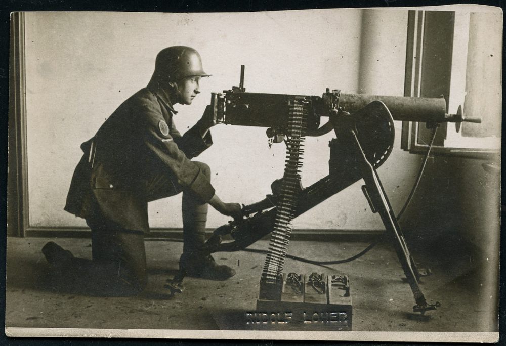 | 1013 | 25 € | WEIMARER REPUBLIK 1919 - 1932/33 : Amberg 1920 (14.3.) s/w.-Foto-Ak.: MG-Schütze mit Maxim-MG 05 , rs. beschriftet: "Leopoldskasern, Bereitschaft 14.3.1920" = Kaserne in Amberg (?), während des Kapp-Lüttwitz-Putsches! | | |