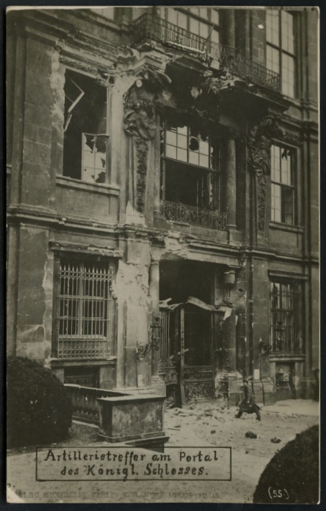 | 1015 | 16 € | WEIMARER REPUBLIK 1919 - 1932/33 : Berlin 1919 (März) s/w.-Foto-Ak.: Artillerietreffer am Portal des Königl. Schlosses , ungebr. (Uhv.: Verlag Michaelis, Berlin) | | |