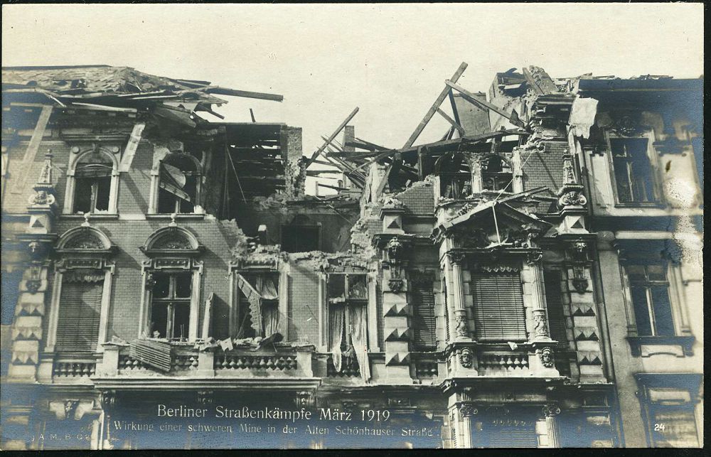 | 1016 | 16 € | WEIMARER REPUBLIK 1919 - 1932/33 : Berlin 1919 (März) s/w.-Foto-Ak.: Berliner Straßenkämpfe, ..Alte Schönhauser Straße (zerstörtes Wohnhaus) ungebr. (Verlag A.M.B.) | | |