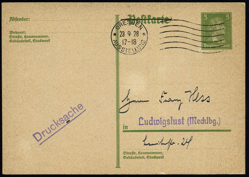 | 1073 | 18 € | WEIMARER REPUBLIK 1919 - 1932/33 : DRESDEN/ *AUSSTELLUNG* 1928 (23.9.) seltener MaWellenSt = Saison-Hauspostamt Ausstellungsgelände , klar gest. Inl.-Karte = Ausstellung "Jahresschau, Die Technische Stadt" + Faksimile-Foto (Bo.50 B) | | |