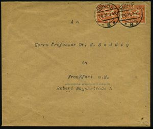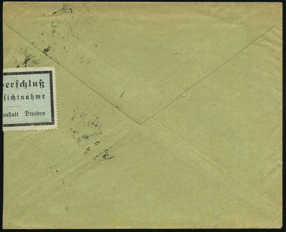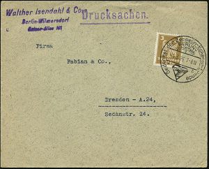 | 1072 | 75 € | WEIMARER REPUBLIK 1919 - 1932/33 : DRESDEN ALTSTADT 1/ */ DEUTSCHES REICH 1923 (23.8.) Infla-PFS "Achteck" 1600 (Mark) + RZ: Dresden 6/a , seltener-Ausl.-R-Bf.: Gesellschaft für Siedlungsbau.. "Drucksache-Einschreiben" n. Schweden, seltene Portostufe "Drucksache-Einschreiben"! (Dü.D-3, Portostufe Dürst unbekannt!) | | |