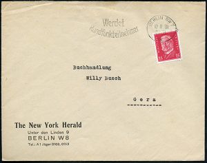 | 1062 | 16 € | WEIMARER REPUBLIK 1919 - 1932/33 : BERLIN NW 7/ IX/ Werdet/ Rundfunkteilnehmer 1931 (10.11.) MWSt auf Firmen-Bf.: The New York Herald = große U.S.Zeitung, finanzierte die Expeditionen Stanley´s 1871 u. 1879 in Afrika, 1924 von der "New York Tribune" übernommen , klar gest. Inl.-Bf. (Bo.S 103 A) | | |