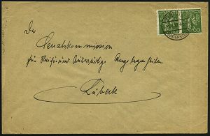 | 1159 | 40 € | WEIMARER REPUBLIK 1919 - 1932/33 : DEUTSCHES REICH 1930 (18.5.) Oval-BPA: DEUTSCHE SEEPOST/LINIE/HAMBURG-/WESTAFRIKA/LXI. = Dampfer "Wadai" , 2x sehr klar auf 25 Pf.-Frankatur (Mi.413/14) rs. hs. Abs.: "..an Bord Postdampfer WADAI", Übersee-Bf. n. Hamburg, seltener Beleg! | | |