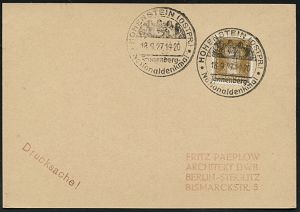 | 1091 | 25 € | WEIMARER REPUBLIK 1919 - 1932/33 : GÖRLITZ/ Sozialdemokr./ Parteitag 1921 (21.9.) seltener SSt 2x + viol. 3L-HdN: Hauptausschuß für den Parteitag/ der S.P.D.. (teils undeutl.) Inl.-Kt. (Bo.4) | | |