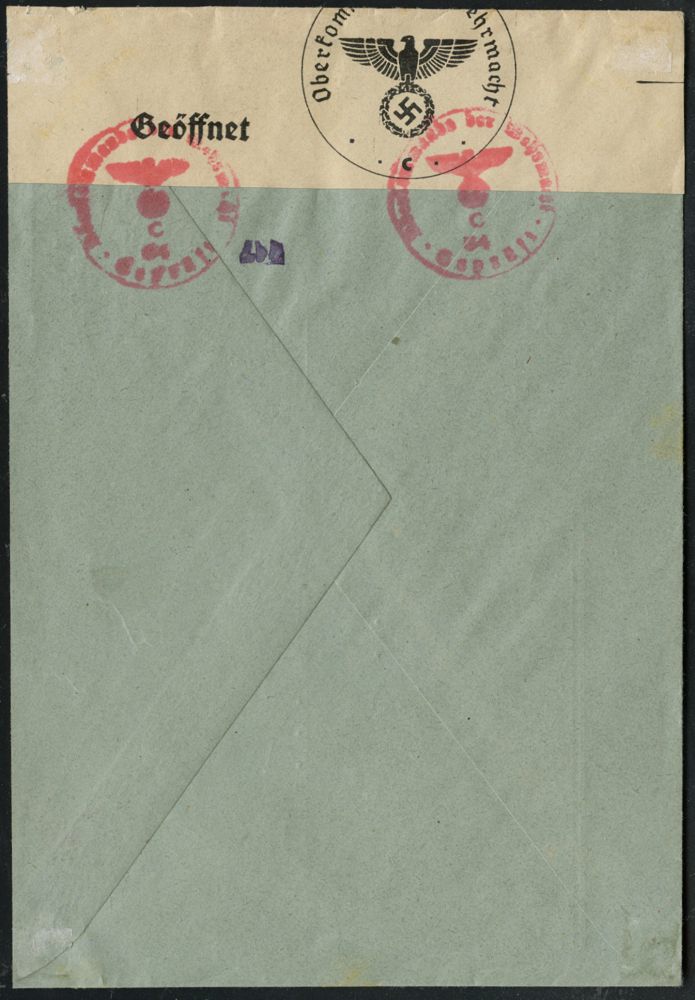 | 1666 | 50 € | ZWANGSARBEIT / LAGER : BERLIN-TEMPELHOF 1/ C.LORENZ/ AG/ HAT WELTRUF 1943 (4.1.) AFS 085 Pf. + roter OKW-Zensur-1K: A e = Frankfurt/M. (Rie.E-32, + 75 Pkte.) + 2K-Steg: BERLIN-TEMPELHOF 1/f, rs. hs. Abs.: "..Lager Schatzelberge, Gr. 7, B.11 K.3.." (Bf. oben kl. Öffnungsmäng.) seltener Ausl.-Flp.-Express-Zensur-Bf. eines französ. Zwangsarbeiters (Nachgebühr), n. Paris, seltene Portostufe! (Dü.E-5DGo) | | |