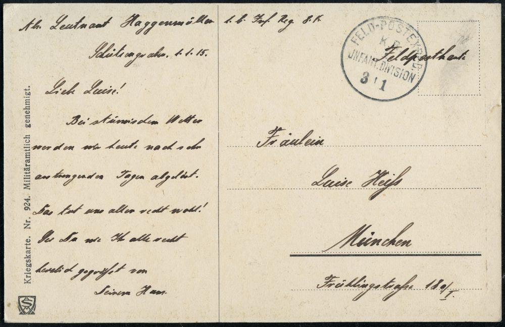 | 95 | 15 € | DIE REGENTSCHAFT WILHELMS II. 1888 - 1918 : DEUTSCHES REICH 1915 (1.1.) monochrome Propaganda-Künstler-Ak.: Hab ich den Frieden so lang gewahrt.. = Wilhelm II. als Ritter, sign. E. Schlemo (oben kl. Rißchen) Zensurvermerk: Militäramtl. genehmigt. (Uhv: A S M Kriegskarte Nr. 924) 1K: FELD-POSTEXPED/K.B./I./JNFANT. DIVISION (Nr.2606), Feldpost-Kt. n. München (ex Collection B. de Perthuis) | | |