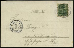 | 93 | 25 € | DIE REGENTSCHAFT WILHELMS II. 1888 - 1918 : DEUTSCHES REICH 1906 PP 5 Pf. Germania, grün: Erinnerung an die Silberhochzeit unseres Kaiserpaares = Kreisbild des Kaiserpaares , ungebr. (Frech unbekannt, PP 27/E...?) | | |