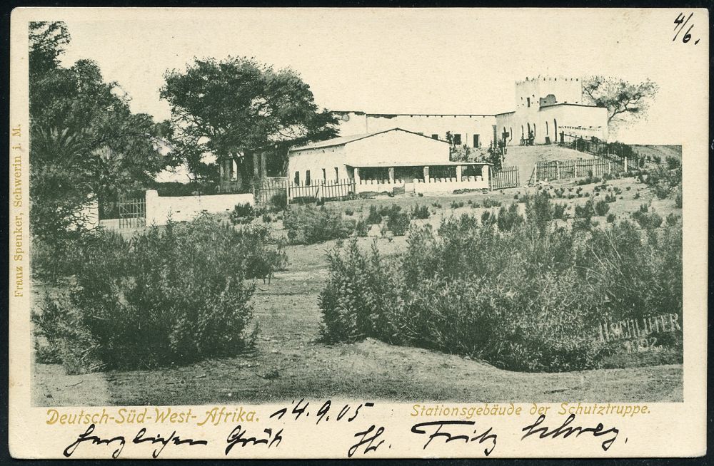 | 153 | 30 € | DEUTSCHE KOLONIAL-GESCHICHTE / KOLONIALKRIEGE : DEUTSCH-SÜDWESTAFRIKA 1905 (14.9.) 1K-Segment: OKAHANDJA/DSW/** + viol. 2K-HdN: Kaiserl. Schutztruppe für Südwestafrika/ Etappenkommandantur/ Okahandja , s/w.-Feldpost-Foto-Ak.: Stationsgebäude der Schutztruppe n. Liegnitz, vs. AS. = Herero-Nama-Feldzug, endete mit einem Genozid | | |