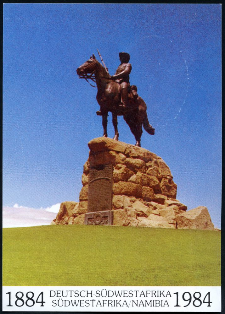 | 124 | 10 € | DEUTSCHE KOLONIAL-GESCHICHTE / KOLONIALKRIEGE : 8820 GUNZENHAUSEN 1/ TAGUNG 60 JAHRE ARGE/ ..KLONIALPOSTWERTZEICHEN 1984 SST (= Umriß von Afrika) auf passender PP 25 Pf + 40 Pf. Burgen: DSW, SÜDWESTAFRIKA, NABIA (Denkmal "Reiter v.Südwest") portorichtige Inl.-Flp.-Karte (Mi.PP 103/6) | | |