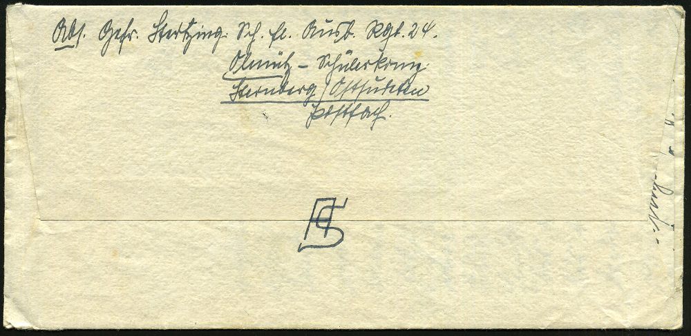 | 2973 | 12 € | II. WELTKRIEG: LUFTWAFFEN-EINHEITEN / LUFTFELDPOST 1939-45 : DEUTSCHES REICH 1943 (15.5.) 1K: FELDPOST/a/--- auf EF Luftfeldpostmke. gez. (Ju 52) + viol. 2L: Oberleutnant WOLFF/ Felp.-Nr. 05213 = 1. Sanitäts-Sanitäts-Zug 19 (19. Inf.-Div.) klar gest. Feldpost-Bf. (rs. Eckfehler) + Inhalt n. Hildesheim (Mi.1) | | |