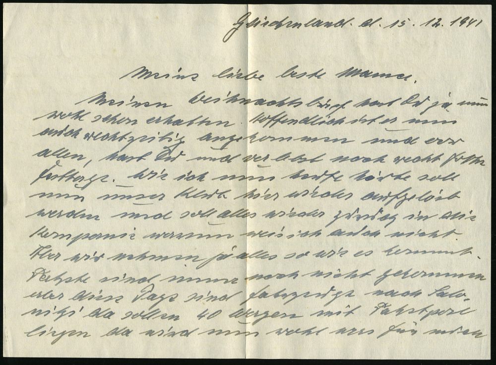 | 3000 | 18 € | II. WELTKRIEG: LUFTWAFFEN-EINHEITEN / LUFTFELDPOST 1939-45 : DT.BES.GRIECHENLAND 1941 (28.10.) 1K: FELDPOST/i/--- + blauer 1K-HdN: Fp. Nr. L 18 539 = Flieger-Nachschub-Kol., Stab Südost (Griechenland?) + hs. Abs. (L.G.P.A. Wien) klar gest. Feldpost-Bf. + Inhalt (Brief + Foto der Familie!) n. Hess. Oldendorf, 3 Belege! (3 Belege kompl.!) | | |