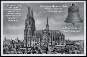 | 2933 | 12 € | II. WELTKRIEG: LUFTWAFFEN-EINHEITEN / LUFTFELDPOST 1939-45 : Köln 1941 (30.12.) stummer 2K-Steg = Tarnstempel Köln + viol. 1K-HdN: Frontleitstelle/Köln + hs. Fp.-Nr.: L 31 733 = Kraftwagen-Werkstatt-Zug der Luftwaffe 56, klar gest. Feldpost-Foto-Ak.: Kölner Dom + Glocke n. Merseburg | | |