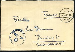 | 2916 | 15 € | II. WELTKRIEG: LUFTWAFFEN-EINHEITEN / LUFTFELDPOST 1939-45 : Berlin 1942 (4.6.) stumme 1K-Brücke = Tarnstempel Berlin + blauer 1K-HdN: Feldpost-Nr. L 37 878/Lg. Postamt Berlin = Ober-Kdo. Luftwaffe, General-Nachrichtenführer (Bf. rs. Klappenriß) Feldpost-Bf. + Inhalt n. Hamburg | | |