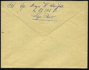 | 2953 | 16 € | II. WELTKRIEG: LUFTWAFFEN-EINHEITEN / LUFTFELDPOST 1939-45 : STUTTGART/ 2/ c/ SDA 1944 (6.7.) HWSt (Bo.56) auf gez. Paar Luftfeldpostmarke (Ju 52) + hs. Vermerk "zurück an Absender neue Anschrift abwarten" , Luft-Feldpost-Retour-Bf. (oben Kerbe) an Fp.-Nr. 20 153 (= Panzer-Gren. Nachrichten-Abt. 25) wurde am 18.9.1944 gestrichen, d.h. vernichtet! | | |