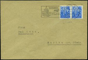 | 3014 | 15 € | LUFT- & BOMBENKRIEG / KINDER-EVAKUIERUNG (KLV) / FLAK-EINHEITEN (1939-45) : DRESDEN A 24/ bb/ DRESDEN/ ruft:/ DENKT AN DEN/ 13. FEBRUAR 1945! 1954 (10.2.) MaWSt = Zwinger, zerstört im Febr. 1945 , = Erinnerung an die katastrophalen anglo-amerikan. Luftangriffe auf Dresden 13.-15.2.1945, Firmenbf., vergl. Los-Nr. 3013, 3030 (Bo.151A III = UB "bb" = nur Anfang 1954 verwendet!) | | |