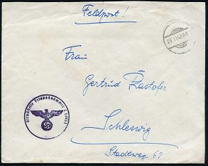 | 3022 | 18 € | LUFT- & BOMBENKRIEG / KINDER-EVAKUIERUNG (KLV) / FLAK-EINHEITEN (1939-45) : München 1942 (14.2.) stummer, aptierter HWSt = Tarnstempel München + viol. 1K-HdN: F.P. Nr. L 05754 = Ergänzungs-Gruppe N a c h t j a g d - Geschwader 1 + rs. hs. Abs., klar gest. Feldpost-Bf. n. Bad Oeynhausen (Mi. Stempelform 02 / Bo.73 apt.) | | |