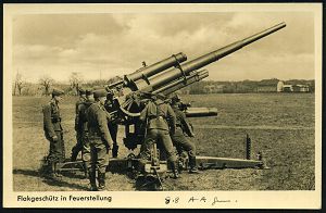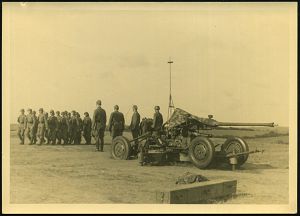| 3026 | 15 € | LUFT- & BOMBENKRIEG / KINDER-EVAKUIERUNG (KLV) / FLAK-EINHEITEN (1939-45) : Munster Lager 1940 (ca.) s/w.-Foto: Flak-Geschütz 4cm (Typ Bofors?) + Mannschaft marschierend (Format: 13 x 18 cm) | | |