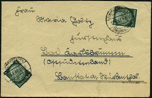 | 3030 | 45 € | LUFT- & BOMBENKRIEG / KINDER-EVAKUIERUNG (KLV) / FLAK-EINHEITEN (1939-45) : Reichenau / Reichenau 1945 (27.2.) 2K-Steg: REICHENAU (SACHS)/c auf 6 + 4 Pf. Goldschmiederkunst (Mi.P 297) an die Vermissten-Auskunftsstelle des Innenministeriums in Dresden, tausende von Menschen galten nach den alliierten Luftangriffen vom 12.-13.2. als vermisst!, seltener Beleg! | | |