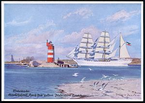 | 3071 | 14 € | DEUTSCHE KRIEGSMARINE 1933-1939 : DEUTSCHES REICH 1937 (ca.) Color-Künstler-Ak.: Segelschulschiff "Gorch Fock" am Leuchtturm Friedrichsort (Signatur Walter Zeeden) ungebr. (Verlag Andelfinger, München) | | |