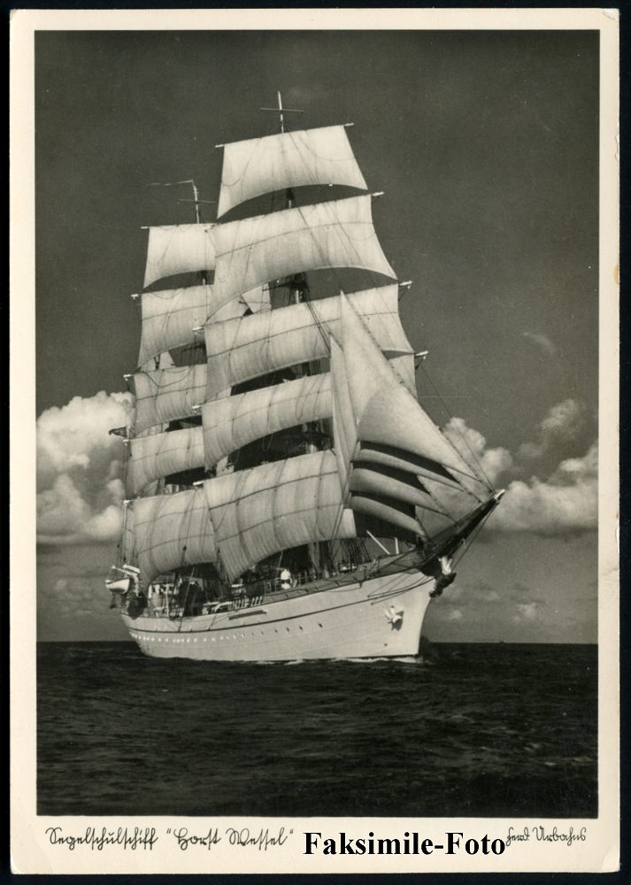 | 3086 | 45 € | DEUTSCHE MARINE-SCHIFFSPOST 1933-1939 : DEUTSCHES REICH 1937 (17.1.) 2K-Bord-PA: DEUTSCHE KRIEGSMARINE/Nr. 31 + viol. 3L: Amtskasse/Segelschulschiff "Horst Wessel".. + Ra.: FdAR/..Kommando Segelschulschiff "Horst Wessel" (mittig etw. undeutl., rechts Riß) sehr seltener Marine-Dienstbf. n. Kiel | | |