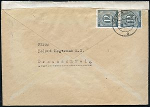 | 3467 | 50 € | DEUTSCHLAND NACH DEM 8. MAI 1945: ALLIIERTE BESETZUNG / KONTROLLRAT : Hameln / Hannover 1946 (26.2.) AFS Postalia "Reichsadler": HANNOVER 1/Der/neue/Freistempler/ Matthias & Siemsen, u n v e r ä n d e r t weiterverwendet = Notmaßnahme! 040 Pf. + 014 Pf., 2 Abdrucke + RZ: (20) H a m e l n 1 auf R-Adreß-Label: Matthäus & Siemsen (kl. Ausriß geschl.) = kriegsbedingt ausgelagerte Firma! n. Hannover, seltener Beleg! (Dü.NE-9 , 2 x ! Verwendung in Hameln!) | | |
