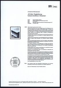| 3511 | 25 € | VERTRIEBENE / FLÜCHTLINGE : B.R.D. 1985 (Nov.) 80 Pf. "40 Jahre Eingliederung heimatvertriebener Deutscher" mit amtl. Handstempel "M u s t e r" , postfr. + amtl. Ankündigungsblatt der Bundesdruckerei (Format A4) 2 Belege kompl., selten! (Mi.1265 Muster = Specimen) | | |
