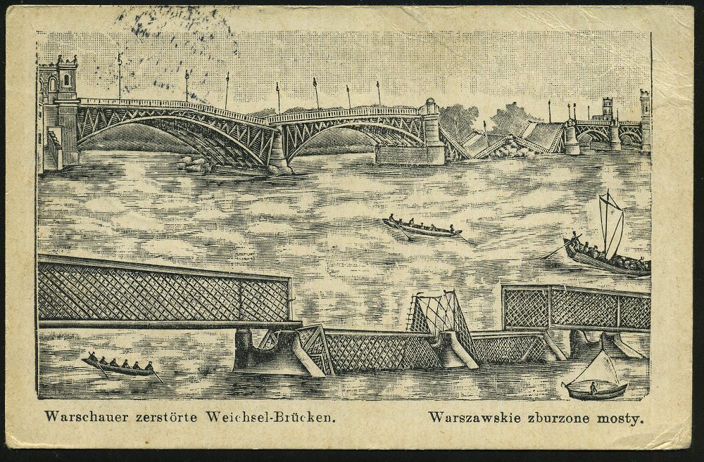 | 457 | 15 € | I. WELTKRIEG 1914 - 18 : DT.BES.RUSS.POLEN 1915 (18.9.) 1K-Brücke: Feldpoststation/Et. Insp. 9. Armee (in Polen bis Sept.1915!) blauer 2K-HdN: ..Landsturm-Jnfanterie-Ers.-Bataillon III/41 + hs. "..Res. Jnf. Reg. 207", klar gest., deorative Feldpost-Künstler-Ak.: Warschau zerstörte Weichsel-Brücken (n. Flensburg) | | |