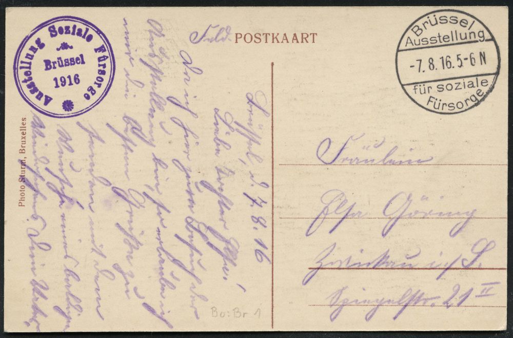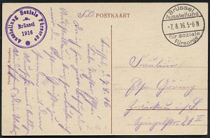 | 450 | 50 € | I. WELTKRIEG 1914 - 18 : DT. BES. BELGIEN 1916 (7.8.) seltener SSt.: Brüssel/ Ausstellung/ für soziale/ Fürsorge + viol. 2K-HdN: Ausstellung Soziale Fürsorge, Brüssel 1916 , glasklar gest. s/w.-Foto-Feldpost-Ak.: Ausstellung Soziale Fürsorge.. mit Ausstellungspalast "INTER ARMA CARITAS", Bedarf n. Zwickau (Bo.1) | | |