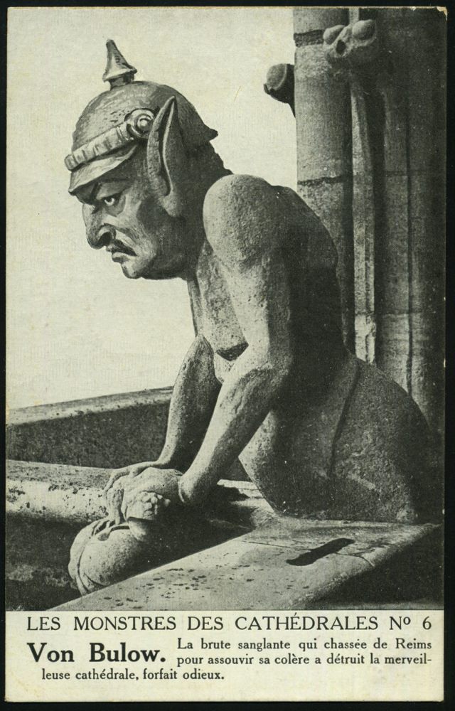 | 473 | 12 € | I. WELTKRIEG 1914 - 18 : FRANKREICH 1914 s/w.-Propaganda-Ak.: LES MONSTRES DES CATHEDRALES No. 6 Von Bulow (Bülow) .. Zerstörer der Kathedrale von Reims (als Gargoyle-Figur) ungebr., Karl von Bülow, 1846-1921, Eroberung von Lüttich u. Namur etc. (ex Collection B. de Perthuis) | | |