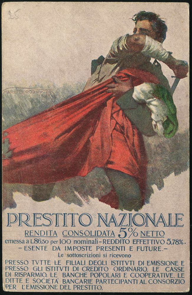 | 488 | 12 € | I. WELTKRIEG 1914 - 18 : ITALIEN 1918 Color-Propaganda-Künstler-Ak.: "KRIEGSANLEIHE.." (Italiener verteidigt Flagge) Künstlersignatur, ungebr. | | |