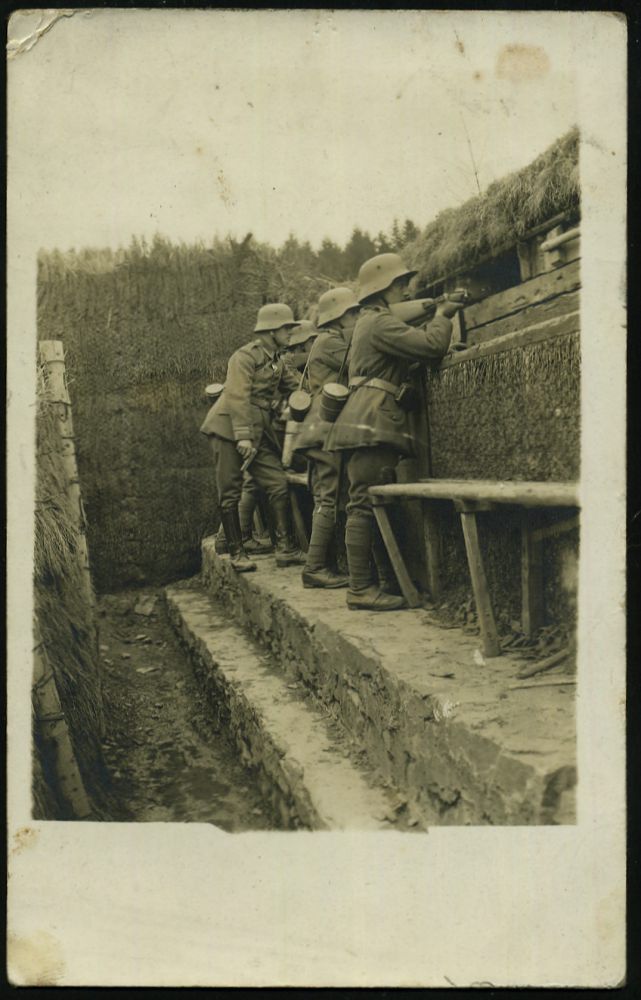 | 433 | 15 € | I. WELTKRIEG 1914 - 18 : DEUTSCHES REICH 1917 (26.8.) individuelle s/w.-Foto-Ak.: Soldaten mit Stahlhelmen, Gasmasken im Schützengraben an vorderster Front, Uffz. mit Pistole , 1K-Brücke: Deutsche Feldpost/*** + HdN: Bayer. 28. Inf. Rgt., Feldpost-Kt. (n. Nürnberg) | | |