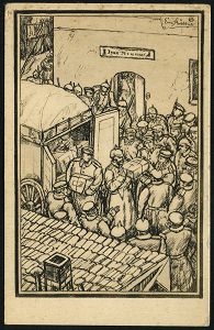 | 439 | 15 € | I. WELTKRIEG 1914 - 18 : DEUTSCHES REICH 1917 (11.12.) s/w.-Rotkreuz-Künstler-Spenden-Ak.: Feldpost-Paketausgabe, sign. Erik Büttner + Briefstempel, Feldpost-Ak. n. Schleswig | | |