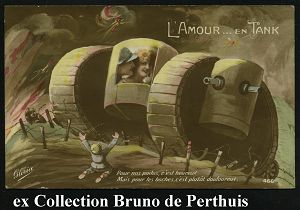 | 478 | 14 € | I. WELTKRIEG 1914 - 18 : FRANKREICH 1917 L´AMOUR..EN TANK, Pour nos poilus.. = Panzer-Kampfmaschien mit Liebespaar vor deutscher Stellung (vs. Text) vs. Zensurvermerk: Visé (Edition Gloria 466) ungebr. | | |