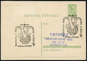 | 3922 | 18 € | KALTER KRIEG (OST-WEST-KONFLIKT) 1945-90 : UdSSR 1961 (Dez.) 3 Kop. BiP Rakete, grün: 5. Weltgewerkschafts-Kongreß Moskau, Thema Abrüstung (Arbeiter zerbricht Gewehr) + rs. passende Zusatz-Frankatur 4 Kop. (Mi.2548) + vs./rs. passender SSt.: MOSKAU | | |