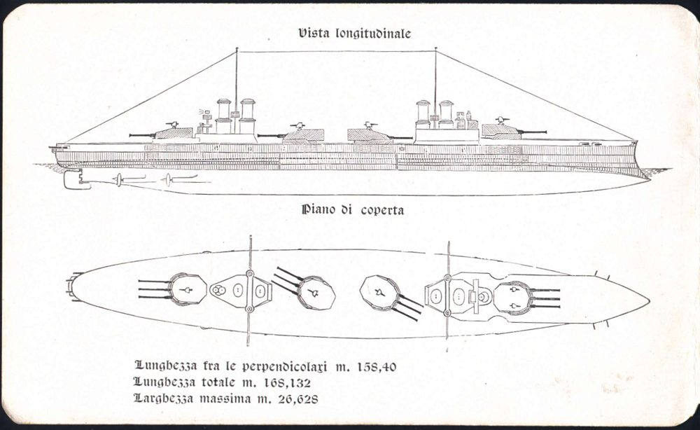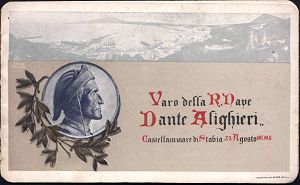 595 | 25 € | I. WELTKRIEG: MARINE-DIENST- & FELDPOST 1914-18 (OHNE MSP) : ITALIEN 1910 (20.8.) Dreifach-Klappkt.: Stapellauf des Schlachtschiffes "Dante Alighieri" mit Aufsicht/ Seitenriß bzw. Foto des Schiffes etc., vs. Dante-Portrait (eigesetzt im I. Weltkrieg), selten!, vergl. Los Nr.596 (Format 17,6 x 10,6 cm) | ![]() ![]() | |