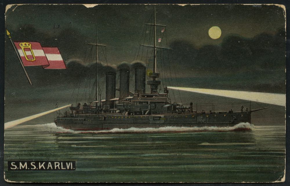599 | 18 € | I. WELTKRIEG: MARINE-DIENST- & FELDPOST 1914-18 (OHNE MSP) : ÖSTERREICH 1914 (17.11.) viol. 1K-BPA: K.u.K. KRIEGSMARINE/S.M.S./ERZHERZOG FERDINAND MAX = Schlachtschiff , klar gest. Color-Feldpost-Ak. : SMS. Karl VI. (Randspuren) n. Hejcin/Böhmen | ![]() ![]() | |