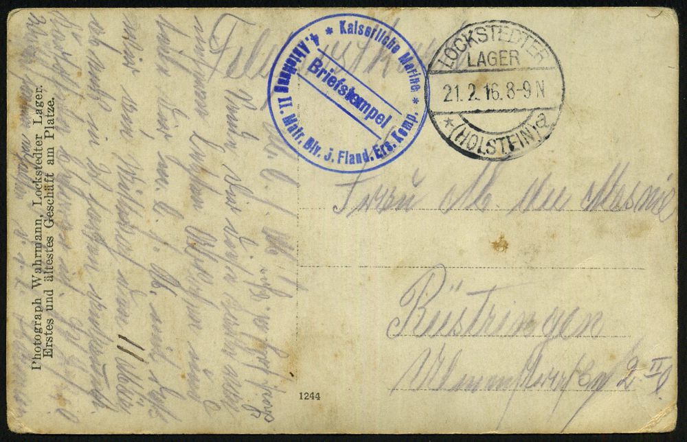 588 | 15 € | I. WELTKRIEG: MARINE-DIENST- & FELDPOST 1914-18 (OHNE MSP) : LOCKSTEDTER/ LAGER/ *(HOLSTEIN)/ a 1916 (21.2.) 1K-Brücke = hauspostamt Truppenübungsplatz + blauer 1K-HdN: Kaiserliche Marine/ 4. Abt. II. Matr. Bly. 3. Fland. Ers. Komp. , klar gest. individuelle s/w.-Foto-Feldpost-Ak. (Marine-Soldaten) n. Rüstringen | ![]() ![]() | |