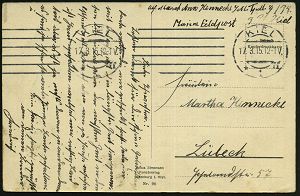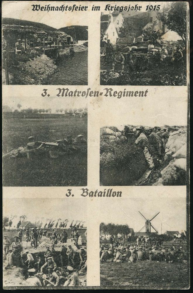 593 | 15 € | I. WELTKRIEG: MARINE-DIENST- & FELDPOST 1914-18 (OHNE MSP) : DEUTSCHES REICH 1916 (6.1.) 1K-Brücke: K.D. Feldpostexped./b/der 2.Marine-Div. (Nr.1552) + viol. 1K-HdN: III. Matr. Reg. auf s/w.-Weihnachts-Feldpost-Ak.: Weihnachtsfeier 1915/3, Matrosen-Regiment (6 Ansichten) n. Kirchberg (Uhv. Joh. Sonntag, Münster Westf.) | ![]() ![]() | |