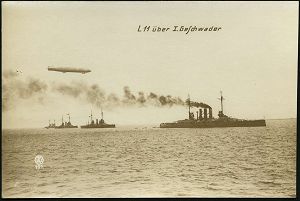 591 | 20 € | I. WELTKRIEG: MARINE-DIENST- & FELDPOST 1914-18 (OHNE MSP) : DEUTSCHES REICH 1915 orig. monochrome Foto-Ak.: Marine-Zeppelin "L 11" ( L.Z. 41) über I. Geschwader (Uhv. F W 191.) ungebr., selten! (Indienststellung 7.6.1915 - 25.4.1917) | ![]() | |