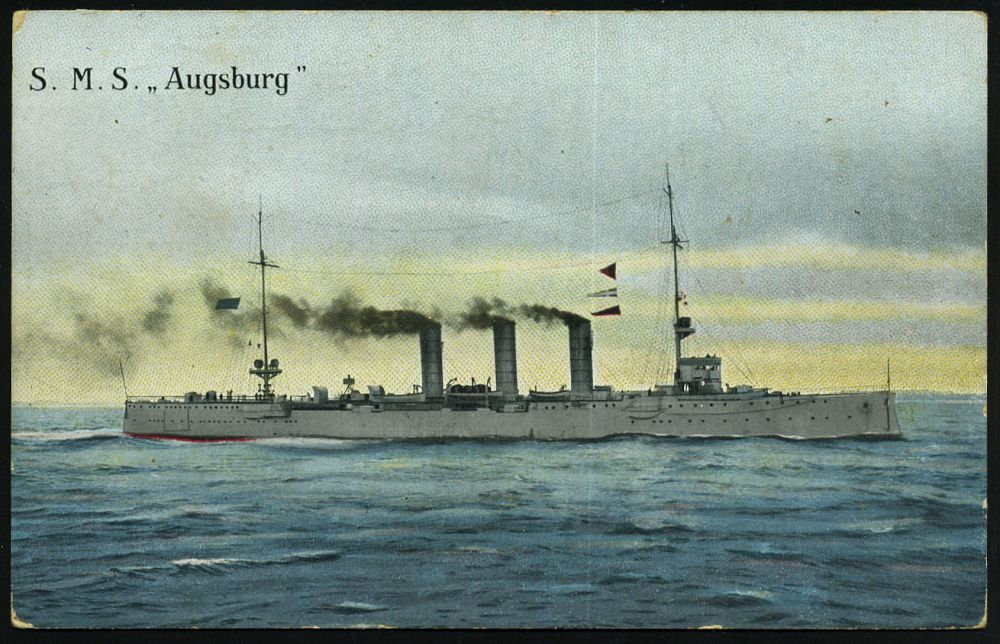 609 | 10 € | I.WELTKRIEG: DEUTSCHE MARINESCHIFFSPOST 1914 -18 : Marine-Schiffspost No. 2 1915 (30.11.) Color-Feldpost-Ak.: S.M.S. Augsburg = Marine-Schiffspost No. 2 , 1K-Brücke: BREKLUM/(Kr. HUSUM), rechts undeutl., Feldpost-Kt. n. Flensburg | ![]() ![]() | |