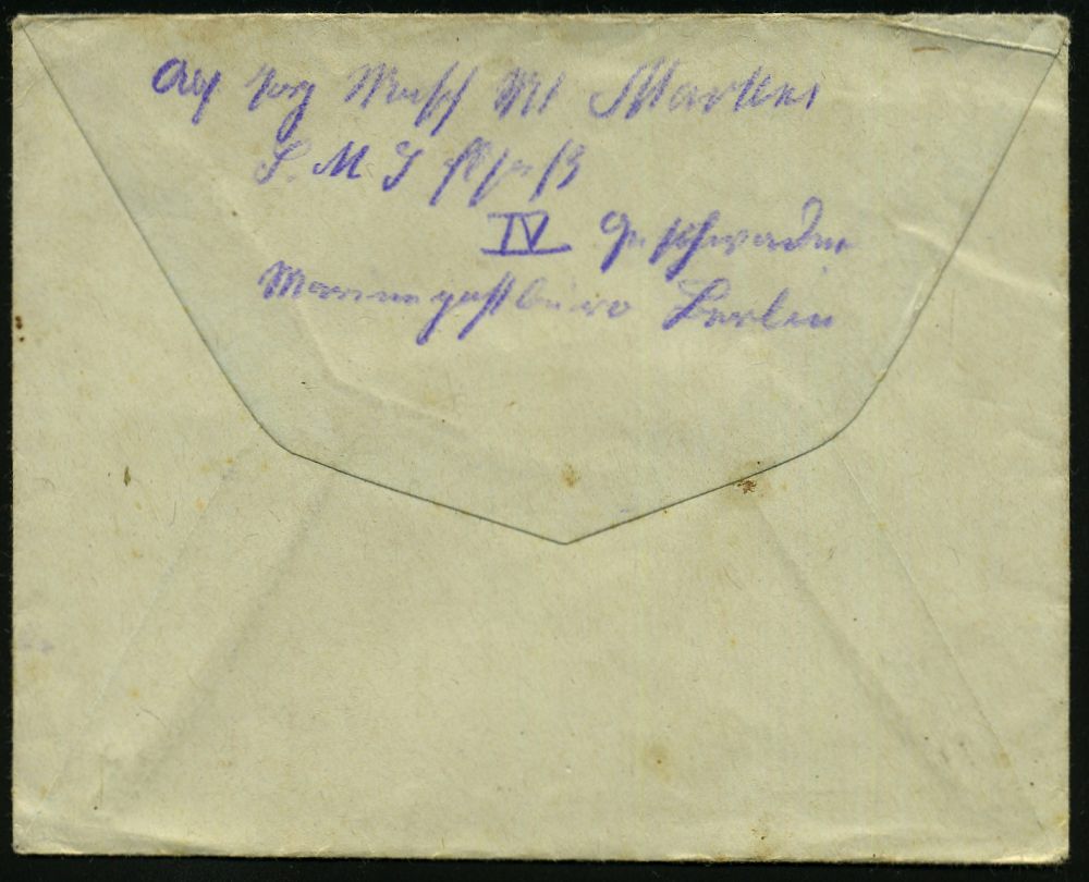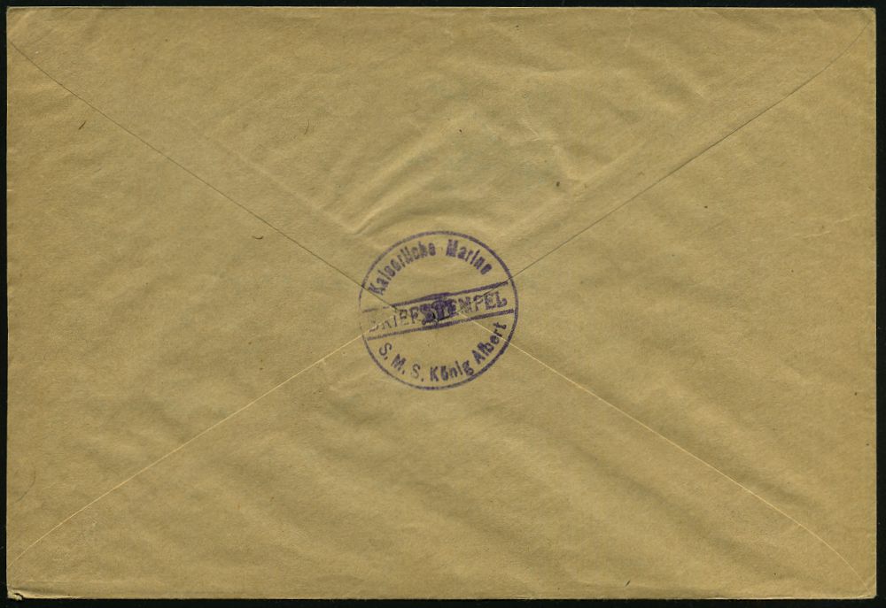 641 | 18 € | I.WELTKRIEG: DEUTSCHE MARINESCHIFFSPOST 1914 -18 : Marine-Schiffspost No. 50 1914 (9.12.) blauer 1K-Brücken-Briefstempel: Kaiserliche Marine/ Kommando/ S.M.S. "Elsass" (= MSP No.162, ab 18.7.1916 MSP No.50), Linienschiff + rs. hs. Abs.: ".. S.M.S. Elsaß, IV. Geschwader, Marinepostbüro Berlin", sauber gest., kleiner Feldpost-Bf. + Inhalt n. Remmels | ![]() ![]() | |
