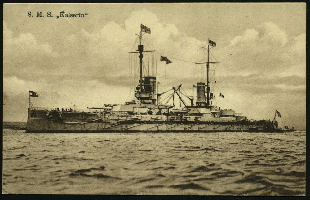 667 | 10 € | I.WELTKRIEG: DEUTSCHE MARINESCHIFFSPOST 1914 -18 : Marine-Schiffspost No. 83 1915 (ca.) individuelle s/w.-Foto-Ak.: S.M.S. Kaiserin (= MSP No. 83) Linienschiff , ungebr. (ohne Uhv.) | ![]() | |