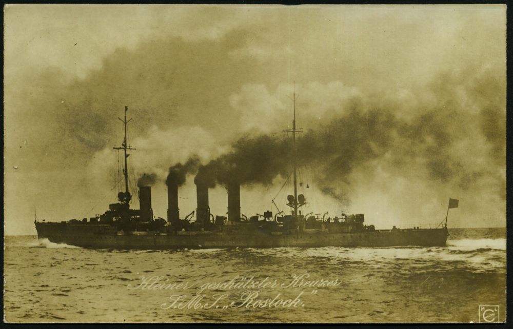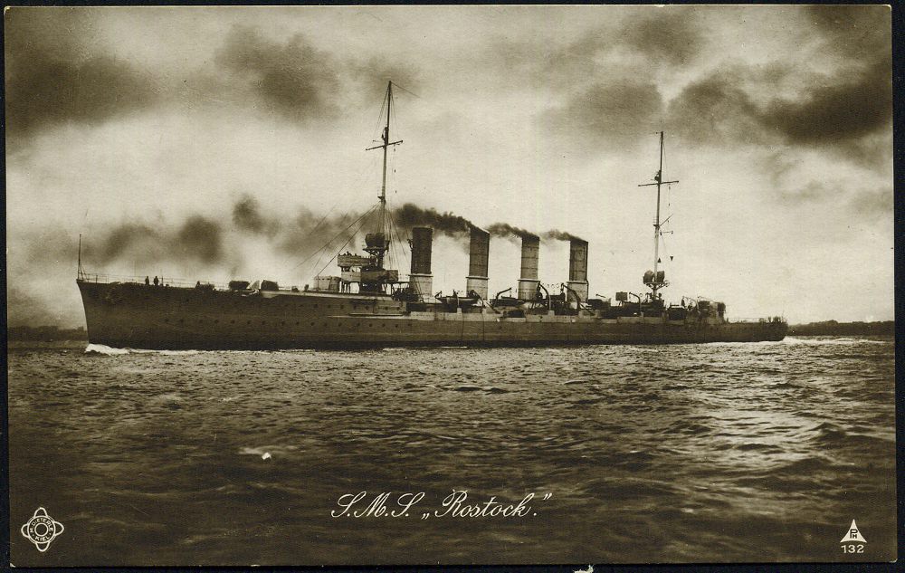 633 | 12 € | I.WELTKRIEG: DEUTSCHE MARINESCHIFFSPOST 1914 -18 : Marine-Schiffspost No. 32 1914 (ca.) monochrome Foto-Ak.: S.M.S. "Rostock" (= M.S.P. No.32) Kleiner Kreuzer, am 31.5.1916 in der Skagerrak-Schlacht gesunken (Friedens-Foto) ungebr. (Uhv. M. Dieterle, Kiel) | ![]() | |