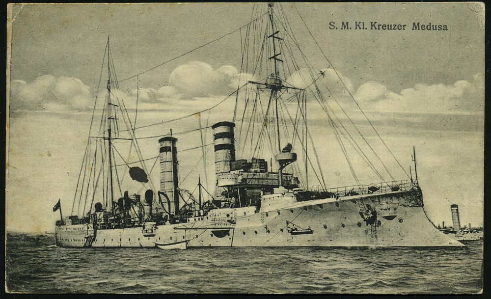 702 | 18 € | I.WELTKRIEG: DEUTSCHE MARINESCHIFFSPOST 1914 -18 : Marine-Schiffspost No. 138 1915 (29.6.) 1K-BPA: KAIS. DEUTSCHE/MARINE-/SCHIFFSPOST/No. 138 (mittig gering undeutl.) = S.M.S. "Medusa", Kleiner Kreuzer (ab 1.4.1915) + hs. Abs.: "S.M.S. Medusa", nachgesandte s/w.-Feldpost-Ak.: S.M.S. Kl. Kreuzer Medusa (kl. Eckspuren) n. Bln-Neukölln, Postausrüstung nur 1.4. bis 15.12.1915 | ![]() ![]() | |