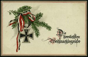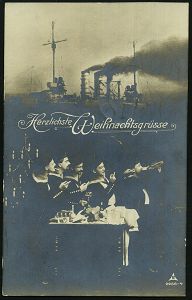 696 | 20 € | I.WELTKRIEG: DEUTSCHE MARINESCHIFFSPOST 1914 -18 : Marine-Schiffspost No. 135 1914 (Dez.) blauer 1K-Briefstpl.: Marine-/Feldpost/S.M.S./Kaiser Wilhelm II./* (= MSP No. 135), Linienschiff (Postausrüstung ab 1.4.1915) patriot. Weihnachts-Feldpost-Ak. (Eisernes Kreuz an Tannenzweig) n. Krautsand | ![]() ![]() | |