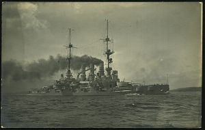 614 | 10 € | I.WELTKRIEG: DEUTSCHE MARINESCHIFFSPOST 1914 -18 : Marine-Schiffspost No. 9 1915 (ca.) individuelle s/w.-Foto-Ak.: S.M.S. "Deutschland" = Linienschiff (MSP No.9) gebaut 1904, September 1917 außer Dienst (ohne Uhv.) ungebr. | ![]() | |