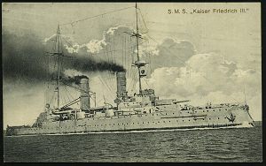 654 | 15 € | I.WELTKRIEG: DEUTSCHE MARINESCHIFFSPOST 1914 -18 : Marine-Schiffspost No. 64 1915 (13.8.) s/w.-Foto-Ak.: S.M.S. "Kaiser Friedrich III." = Linienschiff, 1K-BPA: KAIS. DEUTSCHE/MARINE-/SCHIFFSPOST/No.64 = S.M.S. "Kaiser Friedrich III." (teils undeutl.) + Band-MaSt.: KIEL 1, Feldpost-Kt. n. Flensburg, schöne Kombination! | ![]() ![]() | |