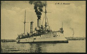 656 | 10 € | I.WELTKRIEG: DEUTSCHE MARINESCHIFFSPOST 1914 -18 : Marine-Schiffspost No. 70 1914 (ca.) s/w.-Foto-Ak.: S.M.S. Amazone = Kleiner Kreuzer, Flaggschiff der Küstenschutz-Division Ostsee (bis Anfang 1916), ungebr. (Uhv. Verlag Gebr. Lempe, Kiel No.6) | ![]() | |