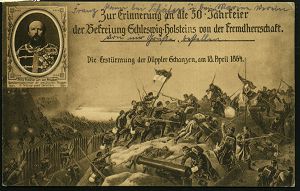 683 | 20 € | I.WELTKRIEG: DEUTSCHE MARINESCHIFFSPOST 1914 -18 : Marine-Schiffspost No. 105 1914 (10.9.) seltener, roter Briefstempel, Ra.2: Marine-Feldpost/ S.M.S. "Brandenburg" (= MSP 105) Linienschiff, V. Geschwader Hochsee-Streitkräfte (Postausrüstung nur 1.4. - Dez.1915) + hs. Abs.: "Kiel..", klar gest. patriot., monochrome Künstler-Feldpost-Ak.: Erstürmung der Düppeler Schanzen Apr. 1864 n. Steele | ![]() ![]() | |